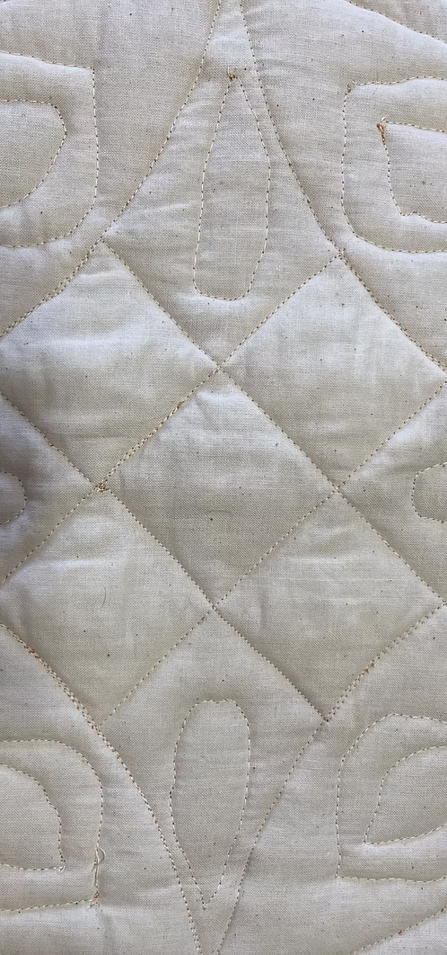 This 45″ X 20″ fall themed table runner can also be used as a wall hanging. There is a rod pocket on the back for hanging.There are three 12″ circles, with 5 squares in the center.